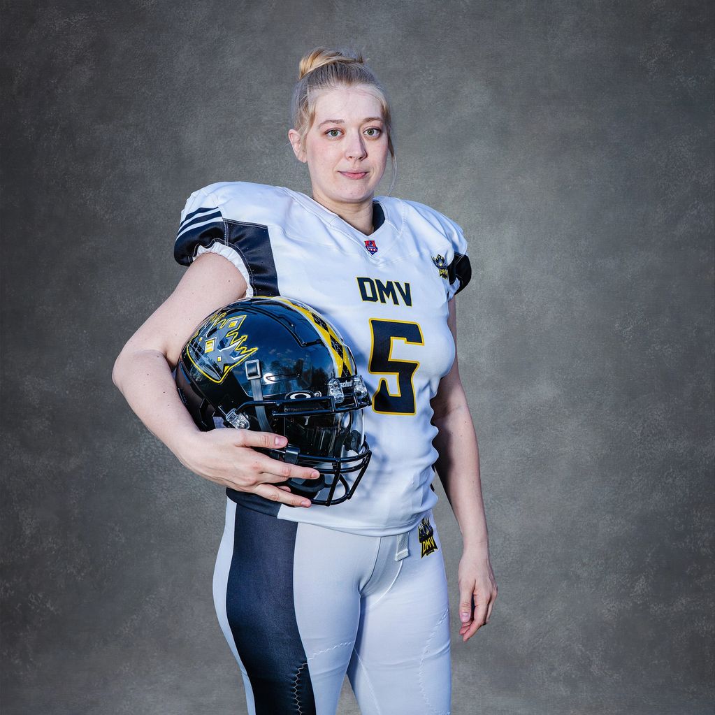 As a 3 year starter and 3 year captain White brings leadership, skill diversity and hunger to the team. White is a 2 time All-Pro player. White made history in 2025 with the longest pick 6 in Queens history & AWFL history (105 yards).